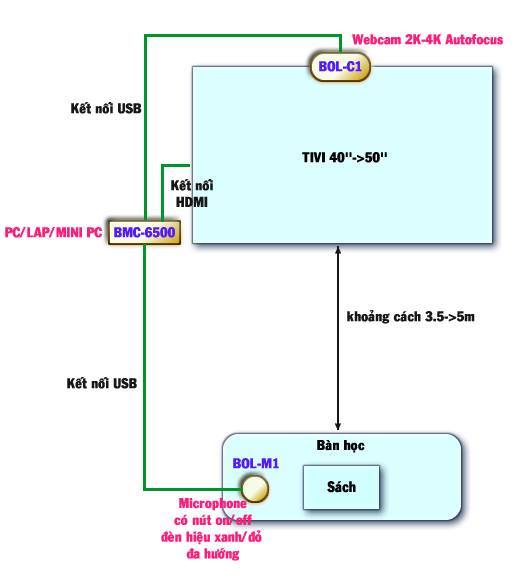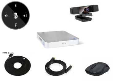 Bộ thiết bị cơ bản gồm: 01 Webcam 2K autofocus/wide angle; 01 míc thu âm đa hướng có nút bật/tắt có đèn LED; 01 dây USB-Type C 5m; 01 bộ MiniPC; 01 cable HDMI