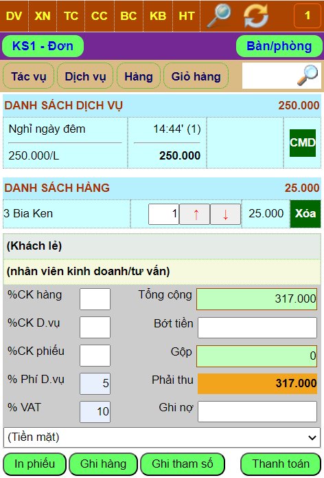 - Quản lý tính giờ - phụ thu dịch vụ, bàn phòng, xuất nhập tồn, bán buôn bán lẻ, chiết khấu..; tính lương hoa hồng nhân viên bán hàng, tư vấn, trực tiếp làm..
