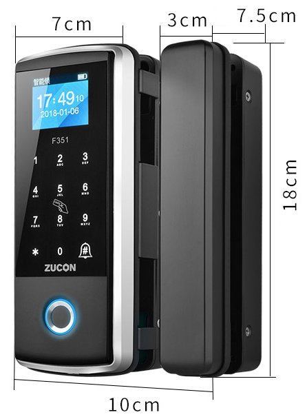 Khóa vân tay cửa kính F351 (vân tay, thẻ, mật khẩu)